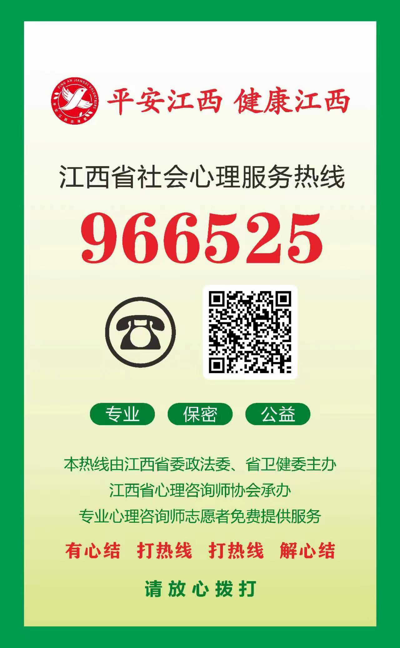 据了解,江西省社会心理服务热线“一线三队”(一条总热线,心理热线接线队、心理健康知识宣传普及队、突发事件与危机干预战斗队)线上线下工作模式已日趋成熟,在纾解民众情绪、化解纠纷矛盾、心理健康科普中发挥了重要作用,成为疏导民众情绪的“减压阀”、助力平安江西建设的“维稳器”、连接党群之心的“连心桥”。