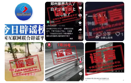 一是编造汛情灾情。造谣者通过视频嫁接、图片拼凑等手段,捏造暴雨、内涝、滑坡、泥石流等灾情信息,并将位置定位在灾害发生地,具有迷惑性,容易让人信以为真。如短视频账号“熟悉的背影”故意将网上下载的其他城市的暴雨视频张冠李戴为郑州,以目击者口吻编造“郑州暴雨下得太可怕,白天变成了晚上”等不实信息,误导众多网民留言表达担忧;网传“重庆奉节口前山体滑坡”,实为湖北秭归一山体发生滑坡瞬间;而短视频中热传的“百年难遇!济南遭遇特大暴雨”视频,经济南互联网联合辟谣平台证实系谣言,视频中的地铁、街道等场景不在济南。