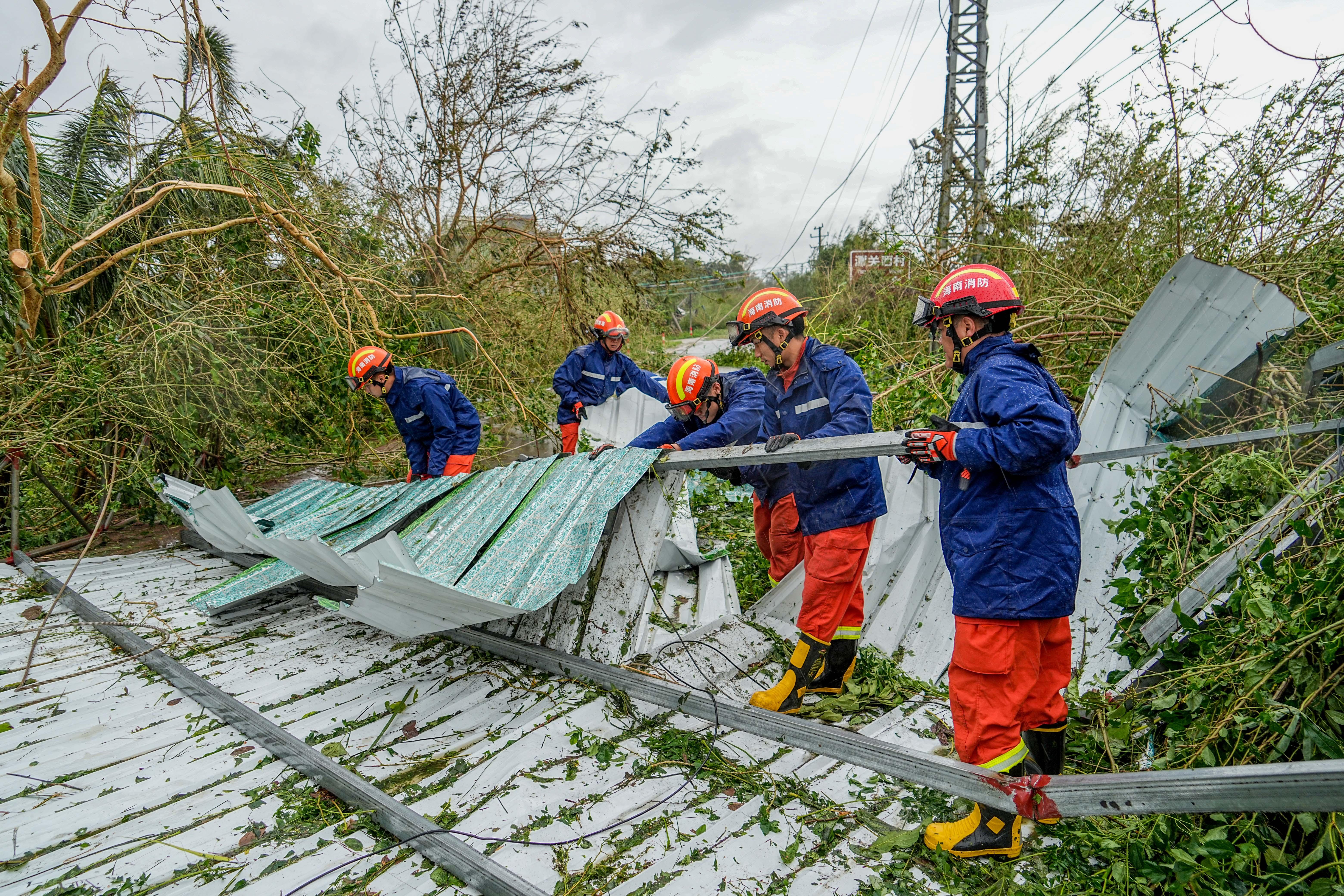 9月7日至今,在文昌、海口等市县的村居、道路、街头巷尾,处处可见政法干警、志愿者等投入灾后恢复重建忙碌的身影。