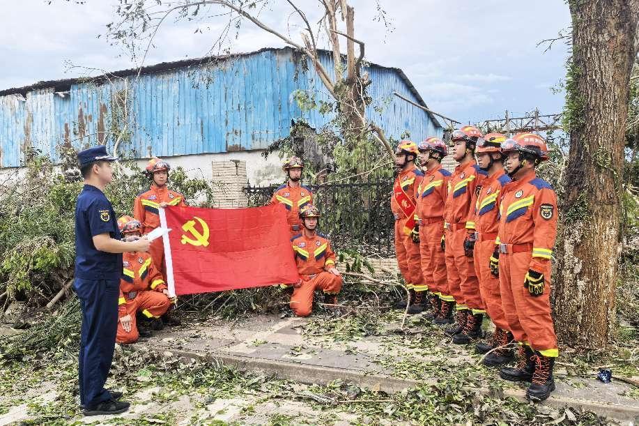 抗击台风以来,海南省消防救援总队指战员立足“防大风、防大汛、防大灾”的要求,闻警出动,不畏艰险、英勇顽强、连续奋战、克服千难万险抗灾救人,全力抢救和保护人民生命财产安全,党组织的堡垒作用和党员先锋模范作用得到充分发挥,极大鼓舞了一大批入党积极分子。经基层党组织研究同意,报上级党委批准,15名入党积极分子加入中国共产党。