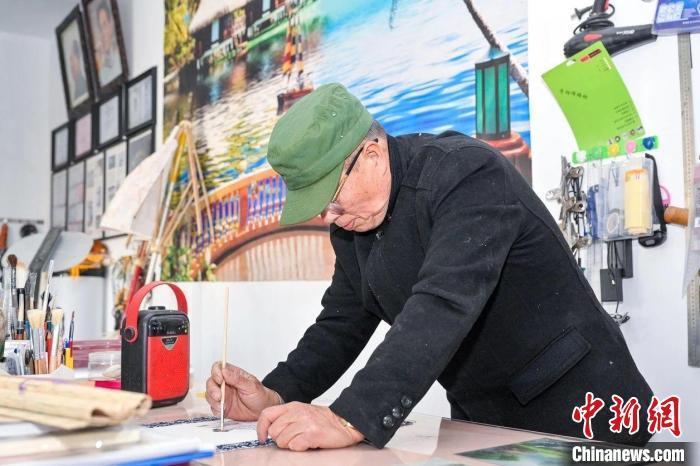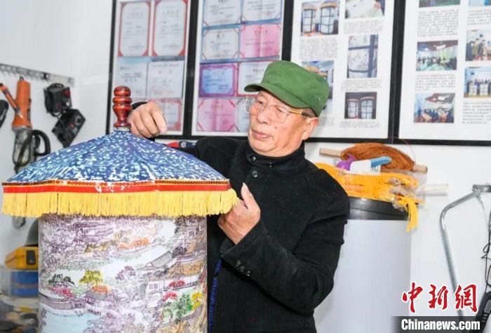 中新网嘉兴2月2日电(黄彦君 蒋彧淼)画画、扎伞骨、蓝印花布裱托、刺孔……农历蛇年春节期间,在浙江省嘉兴市秀洲区新塍镇,年过七旬的陈渊明整日把自己“关”在工作室内,紧锣密鼓制作花灯,为元宵节期间“鳌山灯会”做准备。