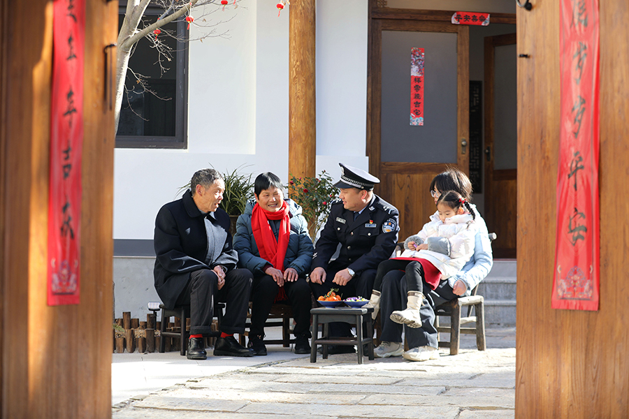 2月8日,安徽省舒城县公安局山七派出所驻村民警辅警深入辖区村庄进行入户走访,开展法治宣传。