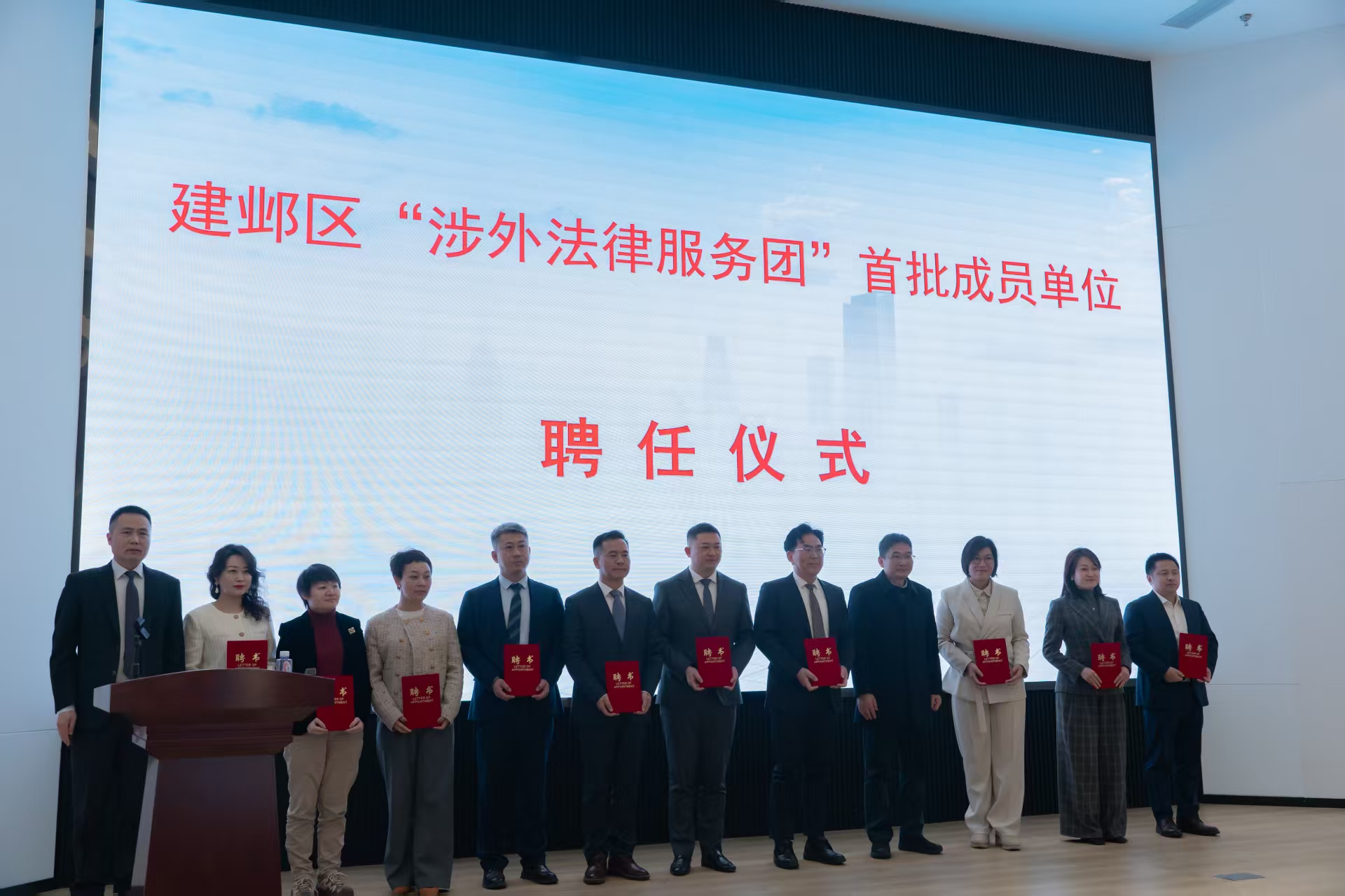 活动中,建邺区“涉外法律服务团”正式揭牌,并发布了首批成员名单:江苏博事达律师事务所、江苏圣典律师事务所、江苏瑞途律师事务所、江苏泰和律师事务所、北京市金杜(南京)律师事务所、北京市盈科(南京)律师事务所、上海市锦天城(南京)律师事务所、北京安杰世泽(南京)律师事务所、北京市万商天勤(南京)律师事务所、上海兰迪(南京)律师事务所成功入选。