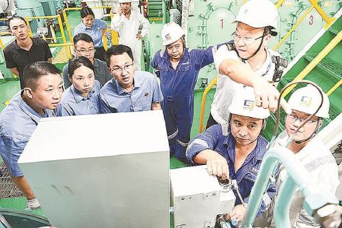 2024年10月,广东省珠海市检察院办案检察官到停靠高栏港国际货柜码头的船舶上查看船舶污水处理设施。