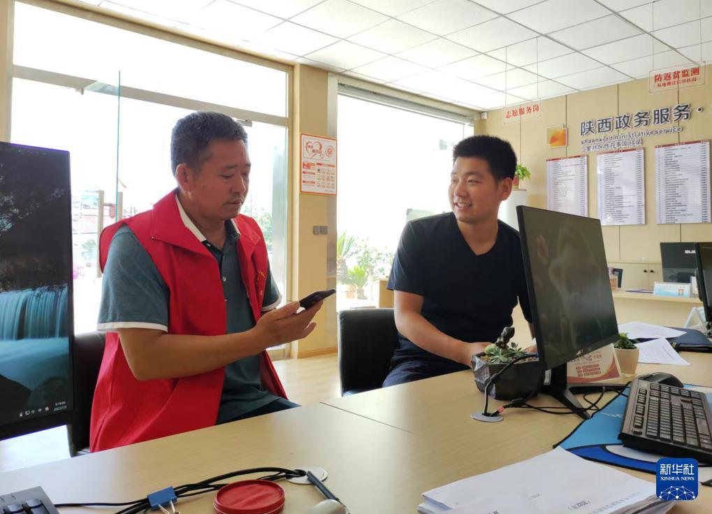 陕西省汉中市西乡县公安局城北派出所民警史礼海(右)在二里社区开展工作(资料照片)。新华社发