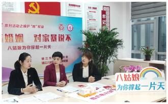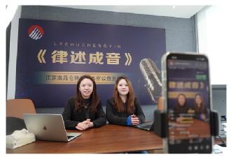 (图为“八姑娘”公益律师联盟成员做客镇江市妇联直播间。严海霞 摄)
