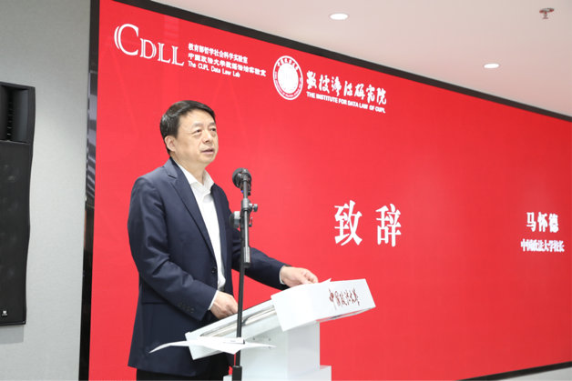 中国政法大学校长马怀德在开幕式上致辞。他回顾了中国政法大学在创设数据法学学科方面的历程与探索,表达了学校对数据法治研究与发展的高度重视和持续支持。他期待与国内外各界同仁携手并进,共同推动数据法治理论研究的繁荣发展,助力数字中国、法治中国建设迈向新的高度。最高人民检察院原副检察长张穹、工业和信息化部原副部长王江平、中国工程院院士陆军、对外经济贸易大学副校长梅夏英等嘉宾出席并致辞,他们充分肯定了中国政法大学数据法治实验室及数据法治研究院自设立以来,在科学研究、人才培养、社会服务等方面取得的丰硕成果,并就统一数据要素市场构建、可信人工智能治理与价值对齐、人工智能时代的世界观与方法论等议题发表了富有洞见的观点。