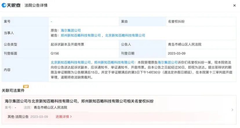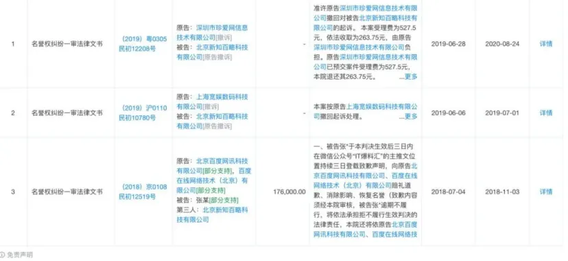 公开信息显示,新知百略和张某此前曾多次被企业起诉名誉权侵权,包括海尔、百度等,并曾被法院判决认定构成侵权,判令其道歉和消除影响。