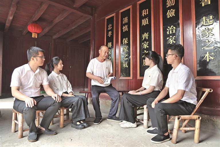 浙江省杭州市富阳区纪委监委深挖本地廉洁教育资源,通过家训传廉、家风倡廉、好家风故事分享会等方式,为新时代廉洁文化建设注入家风力量。图为该区纪委监委在环山乡胡氏宗祠开展老党员分享家训家规活动。李燕 摄