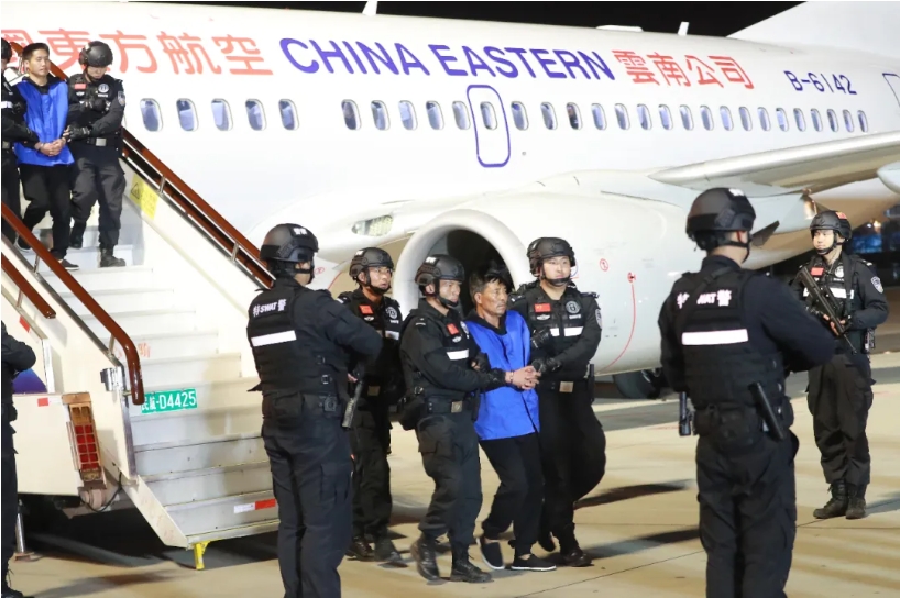 2024年1月30日,在缅甸内比都国际机场,缅甸警方依法向我公安机关移交缅北重大犯罪嫌疑人刘正祥。张建鑫 摄