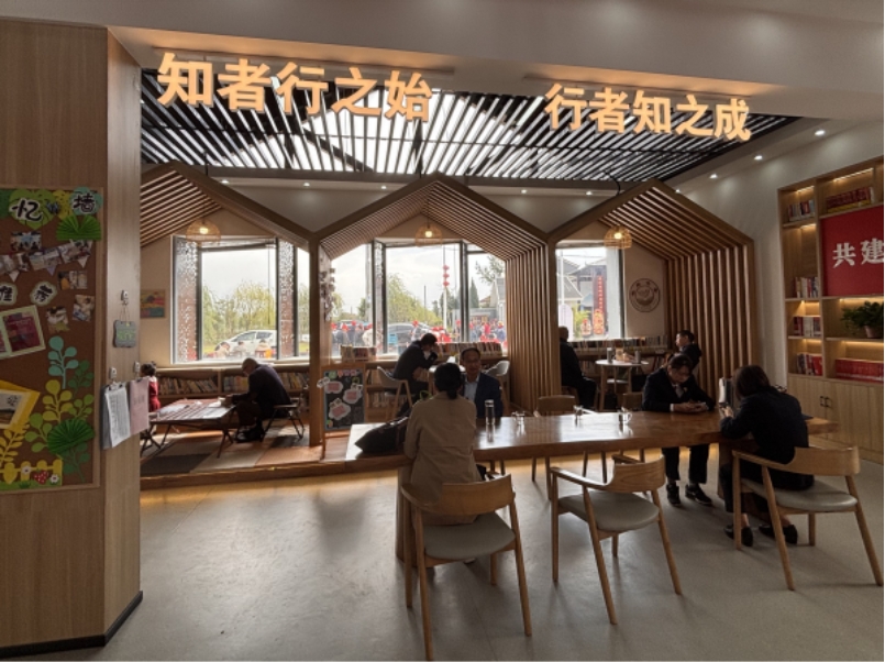 “知者行之始,行者知之成”的灯箱明亮,映照着老干部们专注的面庞。他们或围坐长桌,翻阅党史典籍,在红色记忆里重温峥嵘岁月;或驻足“文化记忆墙”前,于老照片与新故事的交织中,回味乡村变迁与阅读的不解之缘。
