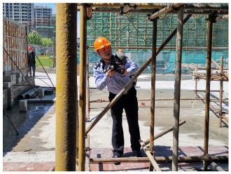 张伟生前在勘查一处高坠警情现场。如东县公安局供图