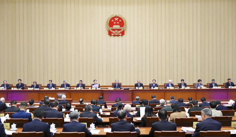 会议听取了全国人大监察和司法委员会主任委员杨晓超、财政经济委员会主任委员钟山、华侨委员会主任委员于伟国、环境与资源保护委员会主任委员鹿心社、社会建设委员会主任委员杨振武分别作的关于十四届全国人大三次会议主席团交付审议的代表提出的议案审议结果的报告。