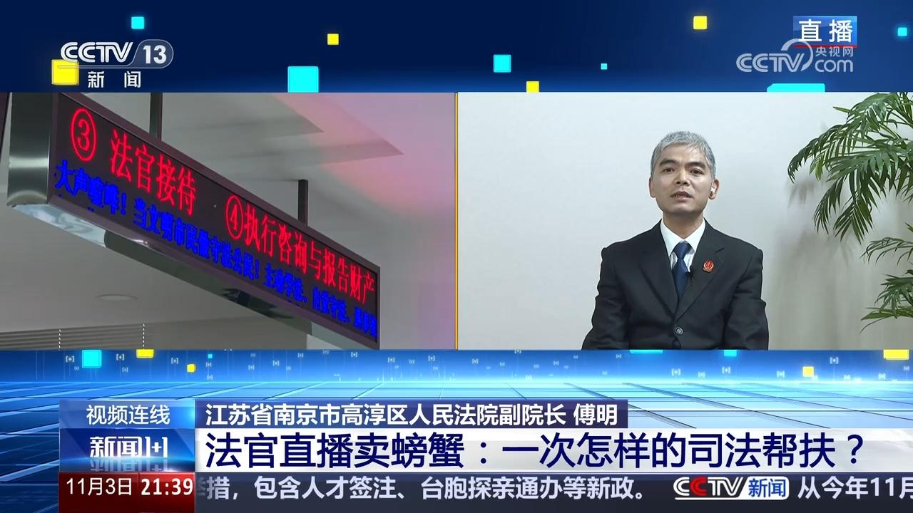央视网消息:10月31日晚,一场“特殊”的直播卖货,吸引了20多万人次的关注。直播间里卖货的人是南京市高淳区人民法院执行局的法官们,他们为何要“直播卖货”?帮助诚信债务人卖螃蟹,背后是怎样的故事?全国范围内,越来越多的法院开展“类个人破产”案件试点,试出了什么?司法、社会等各方面,如何帮助“诚实而不幸”的债务人,重回生活正轨?