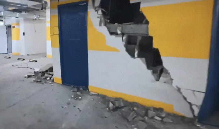 河北省张家口市某小区业主近日发布视频称,小区内地下车库墙体多处开裂,疑似出现地面下沉。