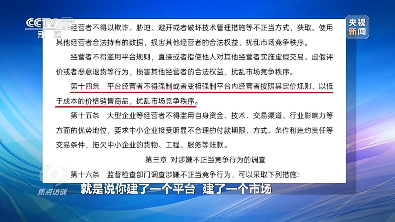 那么,新版的反不正当竞争法实施后,这样的平台“价格战”违法吗?答案是肯定的。最新出台的法规直指电商平台价格战这样的行业顽疾,精准瞄准当下由平台主导的“内卷式”不正当竞争。第十四条条款中写明:平台经营者不得强制或变相强制商家以低于成本的价格销售商品。这意味着,那些“不降价就不给流量”的潜规则,即将成为历史。