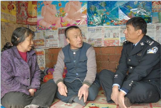 王影 1968年8月出生,生前任黑龙江省哈尔滨市公安局阿城分局原党组副书记、松峰山派出所所长。在担任哈尔滨市阿城区松峰山派出所所长期间,他22年如一日服务山区群众,不断坚定“为山村百姓创造稳定和谐环境、改变贫困山区落后面貌”的信念,始终坚持“紧紧依靠群众、处处服务群众、事事为群众着想”的理念,与人民群众结下了深厚的手足之情,成为山村群众的贴心人。2010年被授予“全国公安系统一级英雄模范”。2013年5月2日,王影因病医治无效逝世。图为2008年10月30日傍晚,王影(右)来到三清村一户村民家调解邻里矛盾。 潘国忠 摄