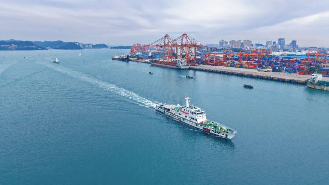 图为中国海警局南海分局牵头组织涉海部门开展海南自贸港“封关护港”联合执法行动。