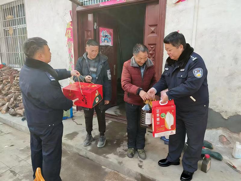 处理完警情,马刚峰还挂念着一户“亲戚”。他带着慰问物资来到辖区困难老人、派出所重点帮扶对象张成家中。