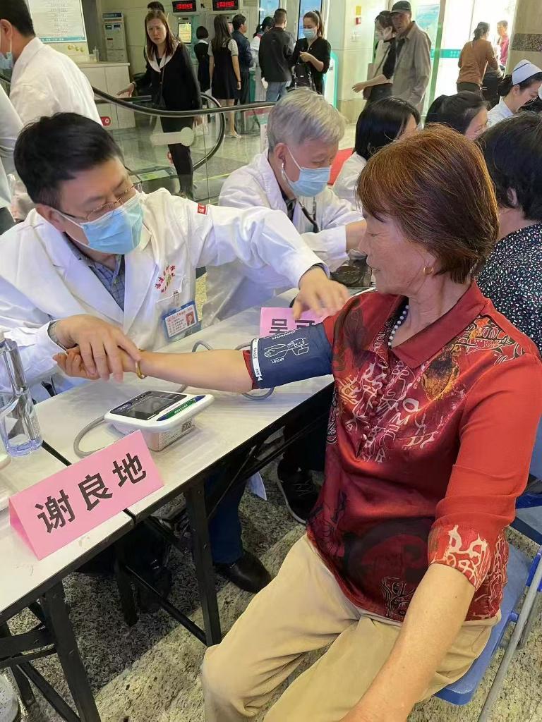 2025年世界高血压日,福建省高血压研究所所长谢良地为群众义诊。(受访者供图)