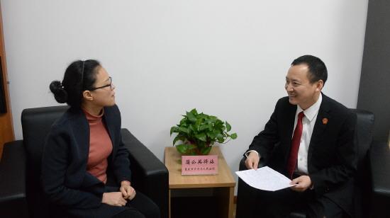 图为重庆市万州区法院三级高级法官助理蒲昌渊在蒲公英驿站背靠背调解一起涉未成年人切身利益的离婚案。 万州区人民法院供图