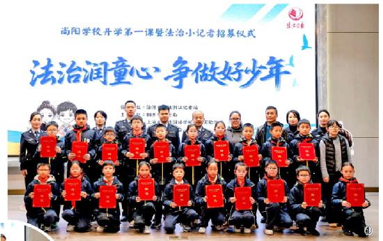 这是一堂特殊的“开学第一课”,也是浙江省桐乡市公安局举办的“法治润童心 争做好少年”主题活动现场。当天,尚阳学校首批20名法治小记者正式受聘上岗,佩戴专属徽章,接过鲜红的聘书,从此多了一重光荣的身份——法治精神的校园传播者。