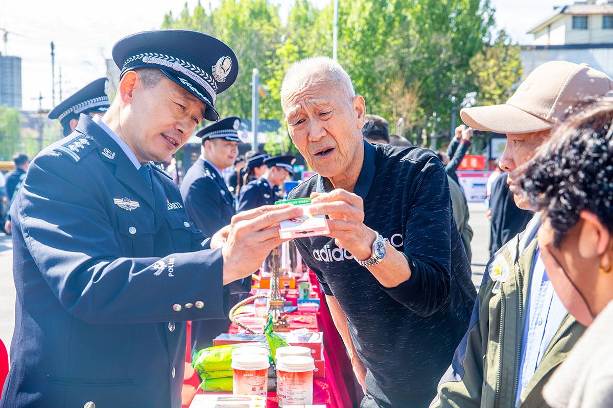 4月13日,在第十一个全民国家安全教育日到来之际,山东省滕州市公安局民警在龙泉广场向市民普及国家安全知识,提高人们维护国家安全的意识。