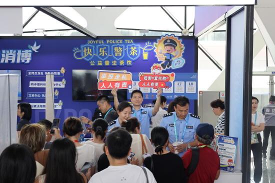 4月13日,第六届消博会启动。在海南省公安厅指导下,海口警方在本届消博会期间创新普法宣传形式,在展馆综合服务处“法治服务专区”设立“警‘茶’局”公益宣传展区,以趣味互动和公益茶饮为载体,为国内外参展客商、市民群众送上一场别开生面的“法治盛宴”。