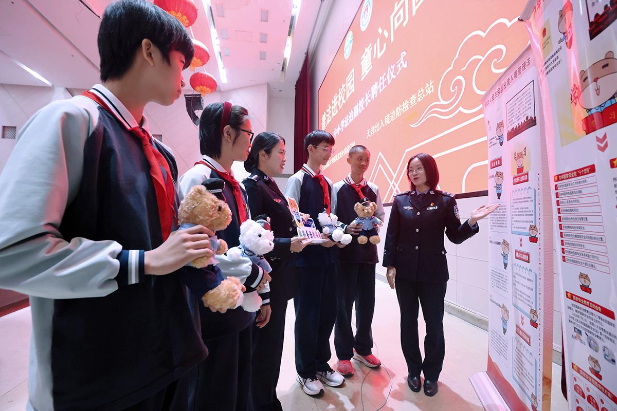 4月14日,天津出入境边防检查总站联合天津外国语大学附属滨海外国语学校举办“中小学法治副校长”聘任仪式,并围绕全民国家安全教育日主题开展普法授课。