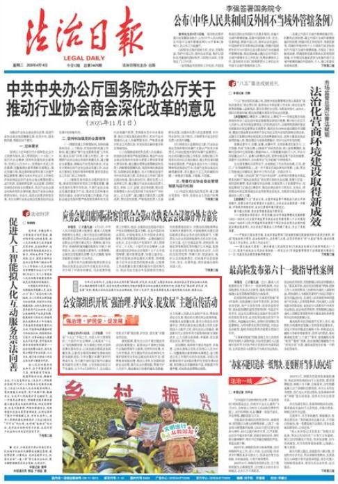 今年4月至明年1月,全国公安机关将开展“强治理、护民安、促发展”主题宣传活动。该活动旨在紧密结合树立和践行正确政绩观学习教育,把宣传成果切实转化为维护国家安全和社会稳定的实际行动。本报开设“强治理、护民安、促发展”专栏,展现公安机关在提升社会治理效能、守护人民安宁、服务高质量发展方面的实践与成效。敬请关注。