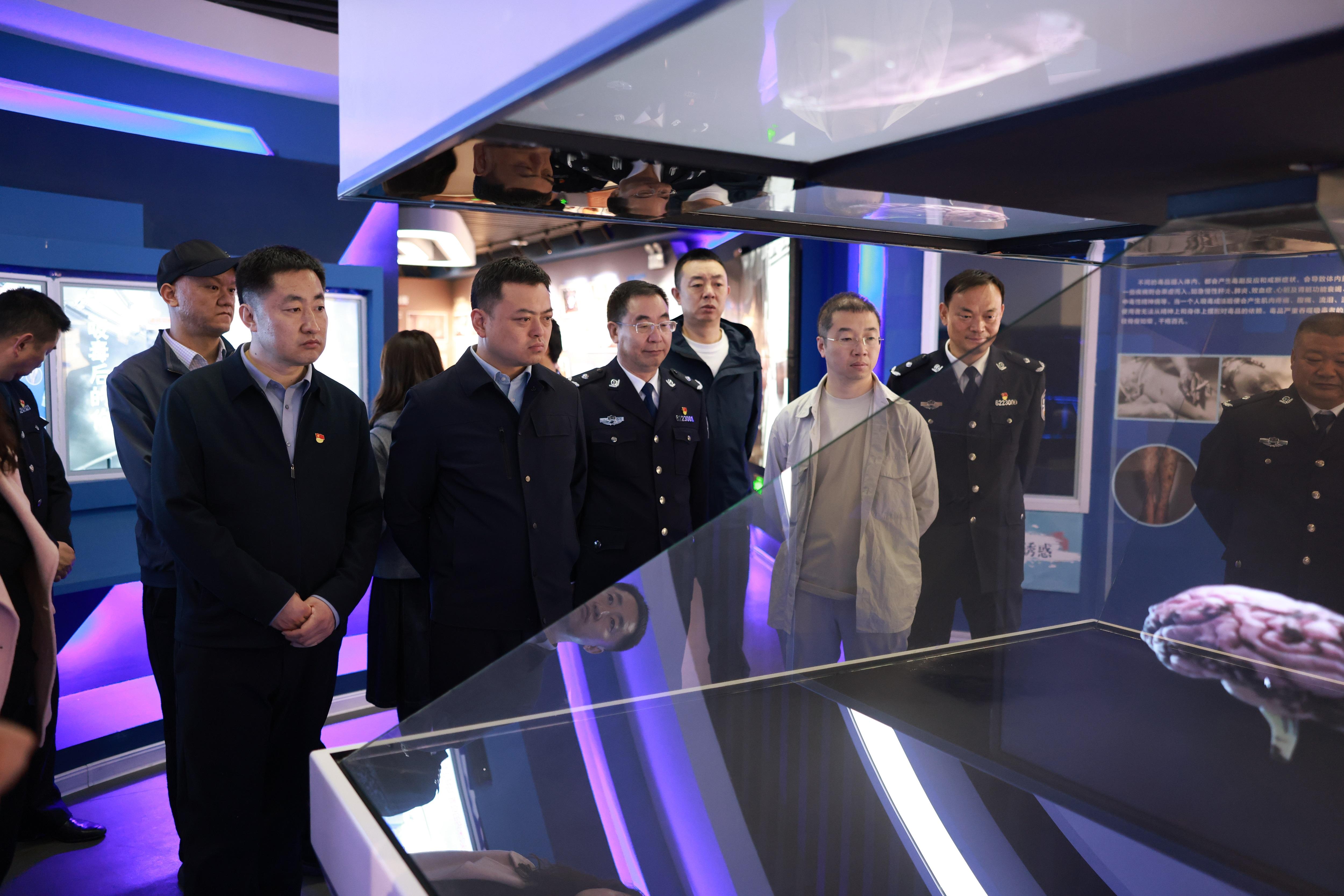 座谈交流结束后,全体党员共同参观了全省法治宣传教育基地。在讲解员引导下,大家依次观看警示教育片、禁毒历史展板,认识毒品仿真模型,体验VR禁毒设施。通过吸毒危害案例及戒毒人员教育矫治成果展示,党员干部们直观了解了毒品对个人、家庭及社会的严重危害,深刻认识到禁毒工作作为国家安全与社会稳定重要一环的战略意义,进一步增强了全体党员防毒拒毒意识与责任担当,为维护社会安全稳定凝聚思想共识。