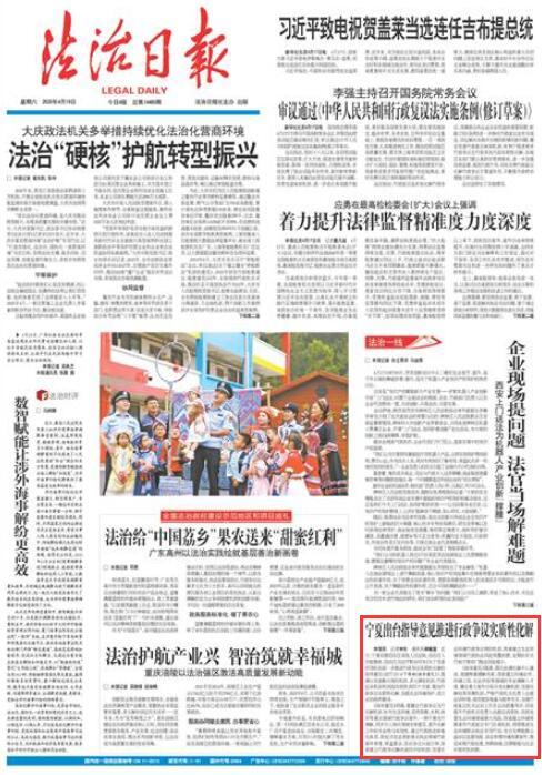 本报讯 记者申东 通讯员单曦玺 近日,宁夏回族自治区高级人民法院、自治区人民检察院、自治区司法厅联合印发《关于完善四项机制进一步推进行政争议实质性化解的指导意见(试行)》(以下简称《指导意见》),强调从完善源头预防机制、多元调处机制、行政应诉机制和风险防控机制四个方面,推动行政争议实质性化解,加强生态环境保护,助力法治政府建设。