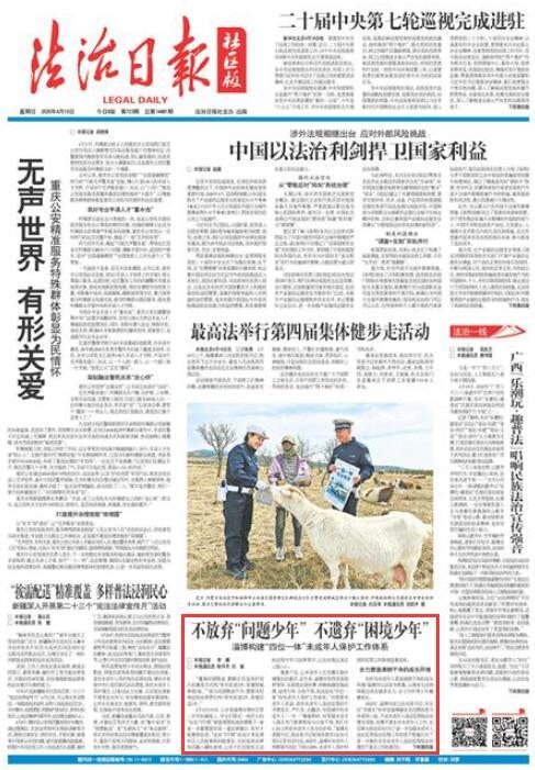寓教于乐,让未成年人在耳濡目染中增强法治意识。近年来,淄博市坚持党委政府领导、市委政法委统筹,积极构建前端治理、宣传引导、分级干预、依法惩处“四位一体”的未成年人保护工作体系。“对侵害未成年人权益、诱发未成年人违法犯罪的行为零容忍、严打击、全整治,对困境中的未成年人‘一对一’精准帮扶,对罪错未成年人强化专门教育矫治与分级干预,我们齐心协力织密未成年人安全防护网。”淄博市委副书记、政法委书记杨旭东接受《法治日报》记者采访时说。2025年,淄博市未成年人刑事案件同比下降13.68%,未成年人保护和预防犯罪工作取得显著成效。