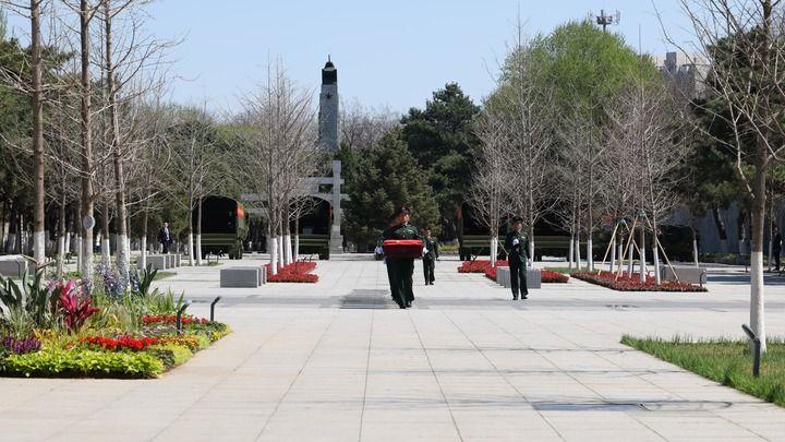 4月22日,这是志愿军烈士遗骸抵达沈阳抗美援朝烈士陵园。新华社记者 杨青 摄