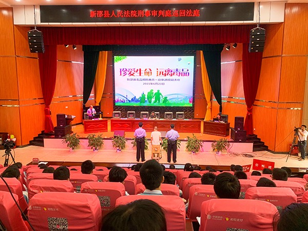 “现在开庭!”6月23日,新邵县人民法院联合县人民检察院等单位在新邵县思源学校开展了“新邵县毒品预防教育-庭审进校园活动”,对一起贩毒案件进行巡回审判,为该校300余名师生上了一堂别开生面的禁毒教育课。