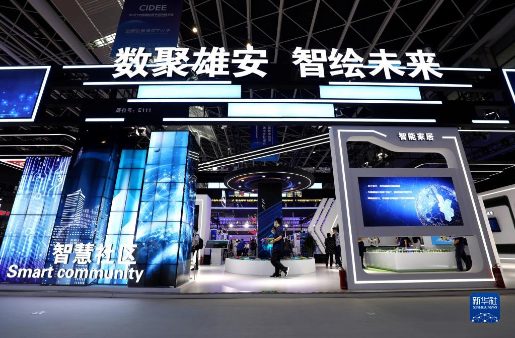 9月6日,参观者在2021中国国际数字经济博览会上参观“数聚雄安 智绘未来”雄安展区。新华社发(梁子栋 摄)