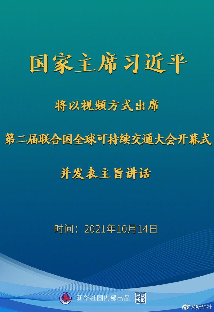 外交部发言人华春莹13日宣布,国家主席习近平将于10月14日以视频方式出席第二届联合国全球可持续交通大会开幕式并发表主旨讲话。