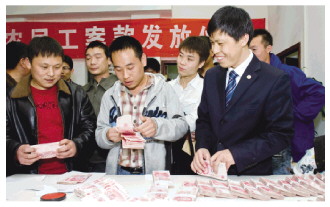 法律援助律师为农民工发放案款。