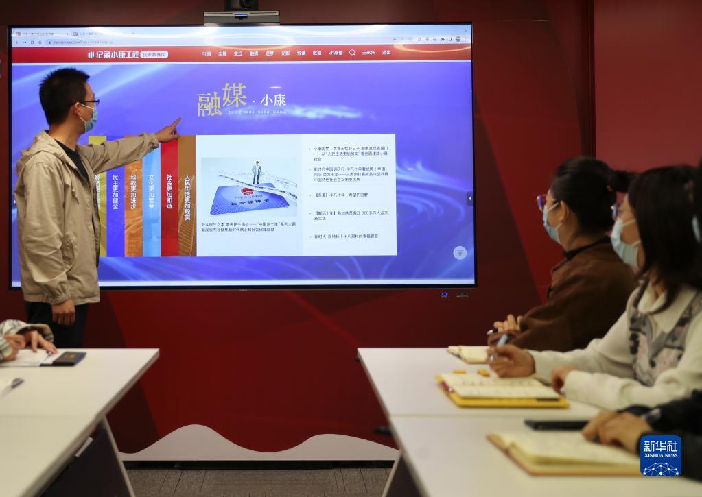 10月14日,“纪录小康工程”数据库工作人员在介绍“纪录小康工程”数据库。新华社记者 王楷焱 摄