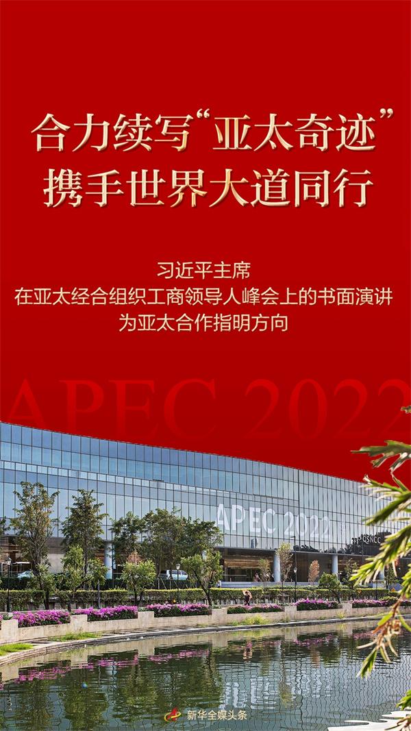 在书面演讲中,习近平主席聚焦坚定推进亚太区域经济一体化、共同开拓发展新局面、构建亚太命运共同体,提出六点倡议。