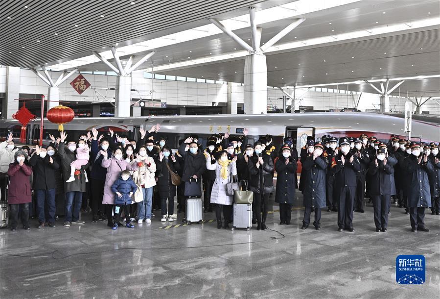 1月18日,郑州东站铁路客运干部职工和旅客同习近平总书记视频连线。新华社记者 燕雁 摄