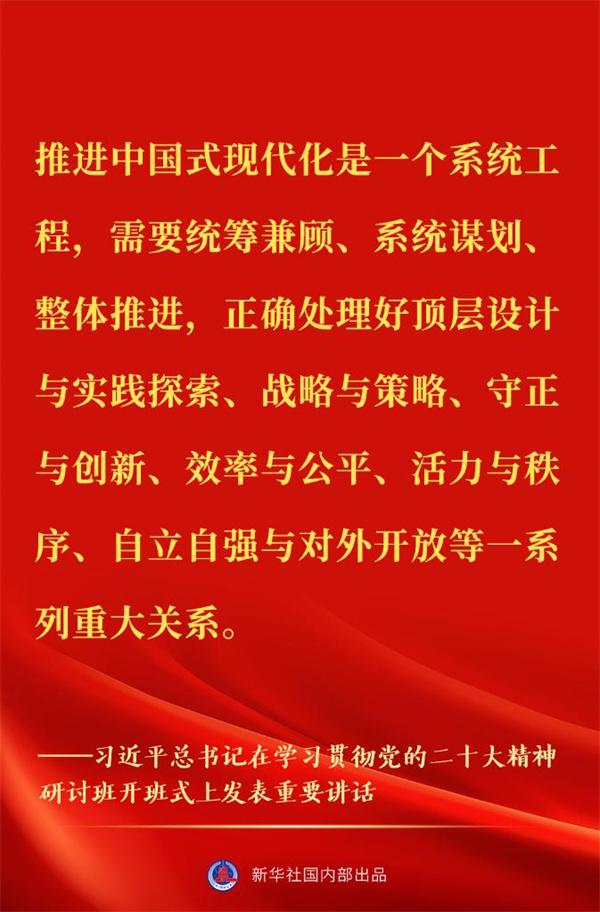 新进中央委员会的委员、候补委员和省部级主要领导干部学习贯彻习近平新时代中国特色社会主义思想和党的二十大精神研讨班7日上午在中央党校(国家行政学院)开班。中共中央总书记、国家主席、中央军委主席习近平在开班式上发表重要讲话。一起来看金句↓