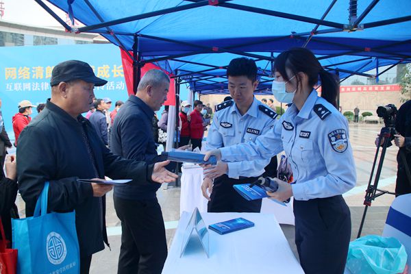 活动现场,网信办面向广大市民宣传网络违法和不良信息举报途径,普及互联网知识,与市民一道构筑网络安全防线。各参会单位开展宣传工作并向市民解答本行业本部门的法律问题。现场向群众发放宣传折页、发放印有“依法管网、依法办网、依法上网,全面推进网络空间法治化”“坚决抵制网络造谣传谣、网络低俗恶俗等不文明行为,维护网络空间清朗”“捍卫网络法治、护航网络文明”等字样的布袋 、雨伞、U盘、指甲剪套盒、围裙等群众实用的宣传物品。