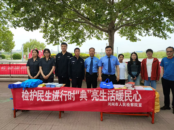 5月24日上午,河间市检察院参加市委政法委统一安排的全市政法机关集中普法活动。检察官在瀛海公园广场,通过挂条幅、设立法律服务平台、发放宣传材料和现场答疑解惑等形式向过往群众介绍了检察机关职能、行政检察监督指南、防范电信网络诈骗、民法典(百姓篇、家庭篇)等内容。在与检察官交流中,过往群众提出自己关心的家庭婚姻、继承及侵权等问题,检察官给予了耐心答复。群众对检察机关经常性普法宣传给予点赞,让他们收获了很多法律知识,增强了法律意识。