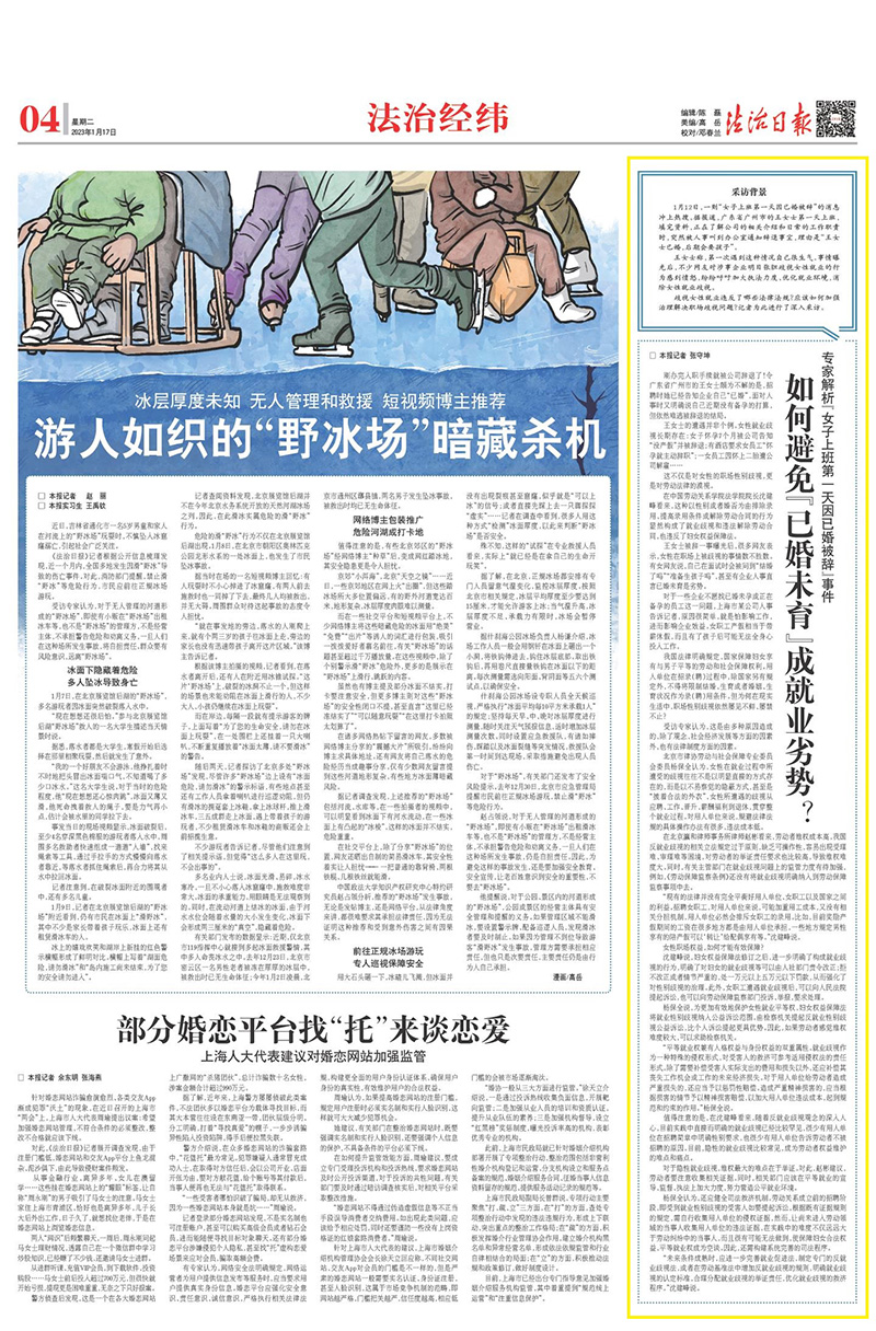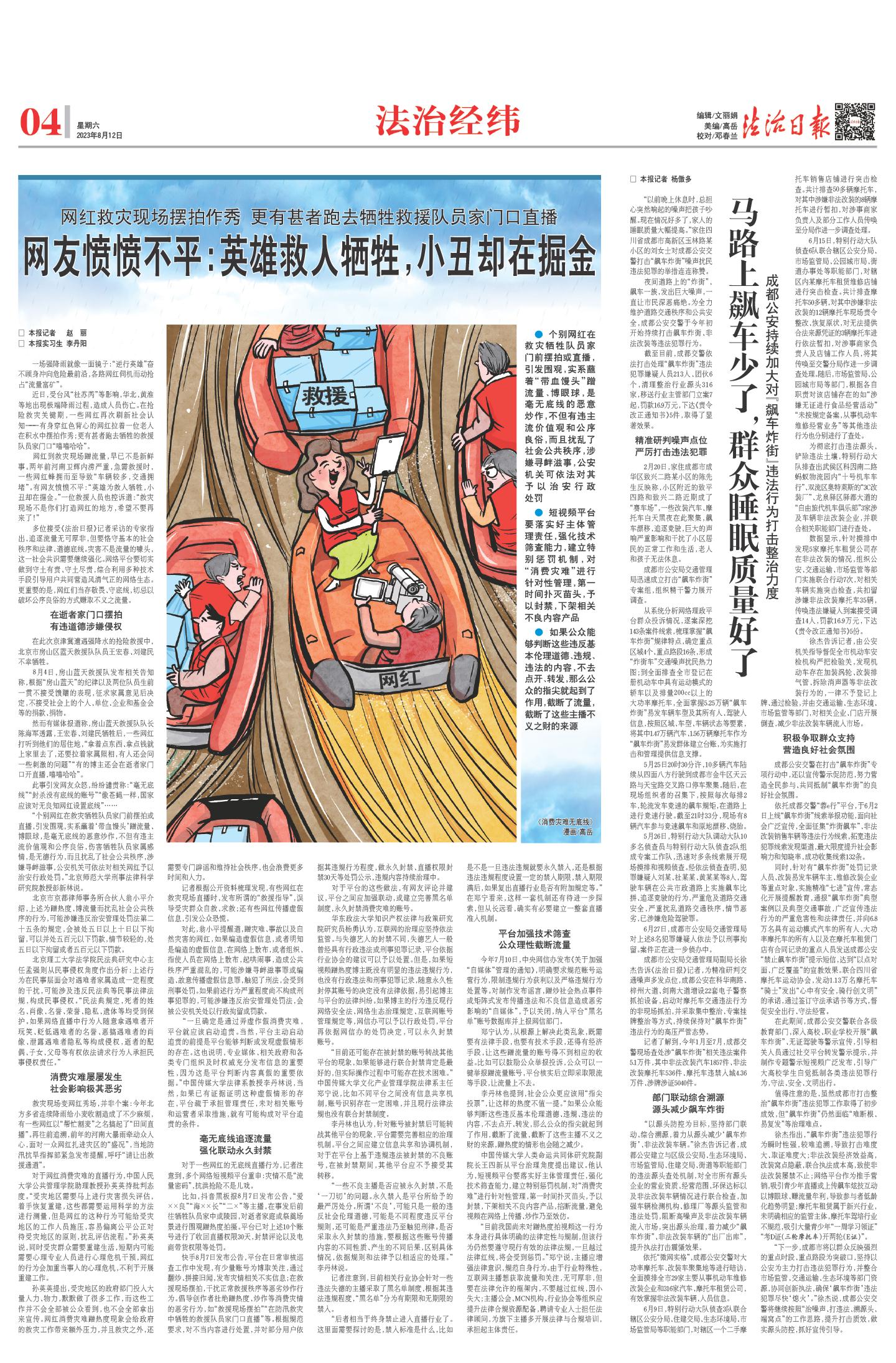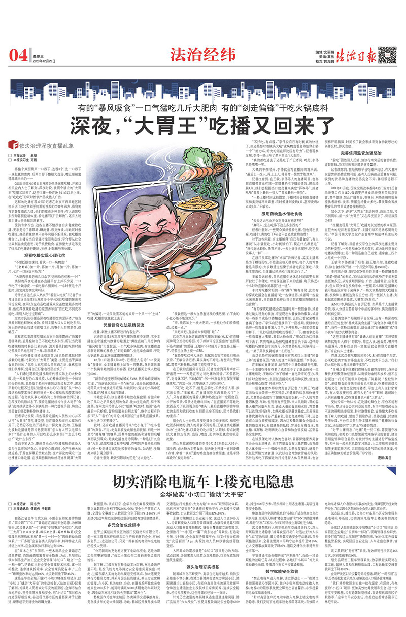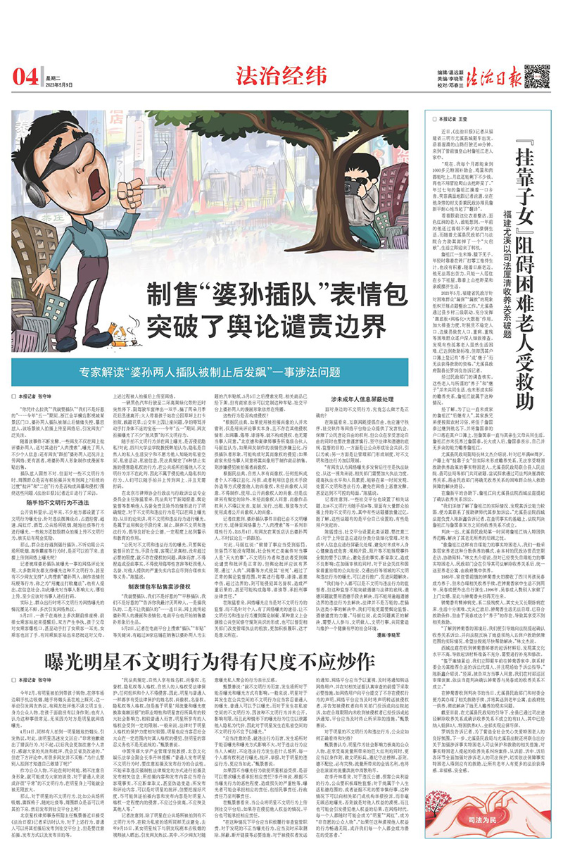 紧盯热点话题,找准法治切入点,做好全链条考量,确保专业快速发声,有力有效引导社会舆论。持续做好一版“法治时评”栏目,全年推出约200篇评论。针对四川一幼童遭大型犬撕咬、“婆孙插队门”等突发社会热点新闻,及时解析背后的各种法律问题,为公众提供主流价值、观点和思考。淄博烧烤、“村超”“村BA”爆火后,组织记者深入现场调查采访,探寻基层社会治理创新模式。