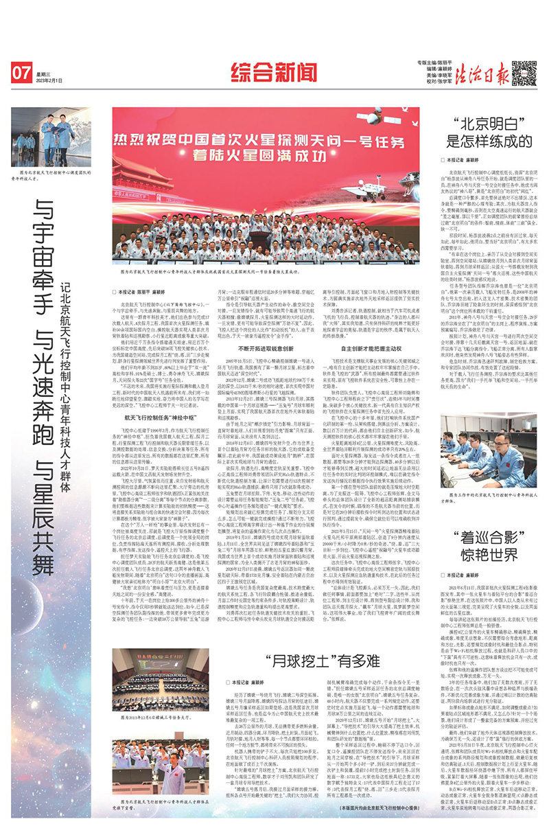 2023年2月1日《法治日报》7版,以整版报道展现北京航天飞行控制中心青年科技英才风采
