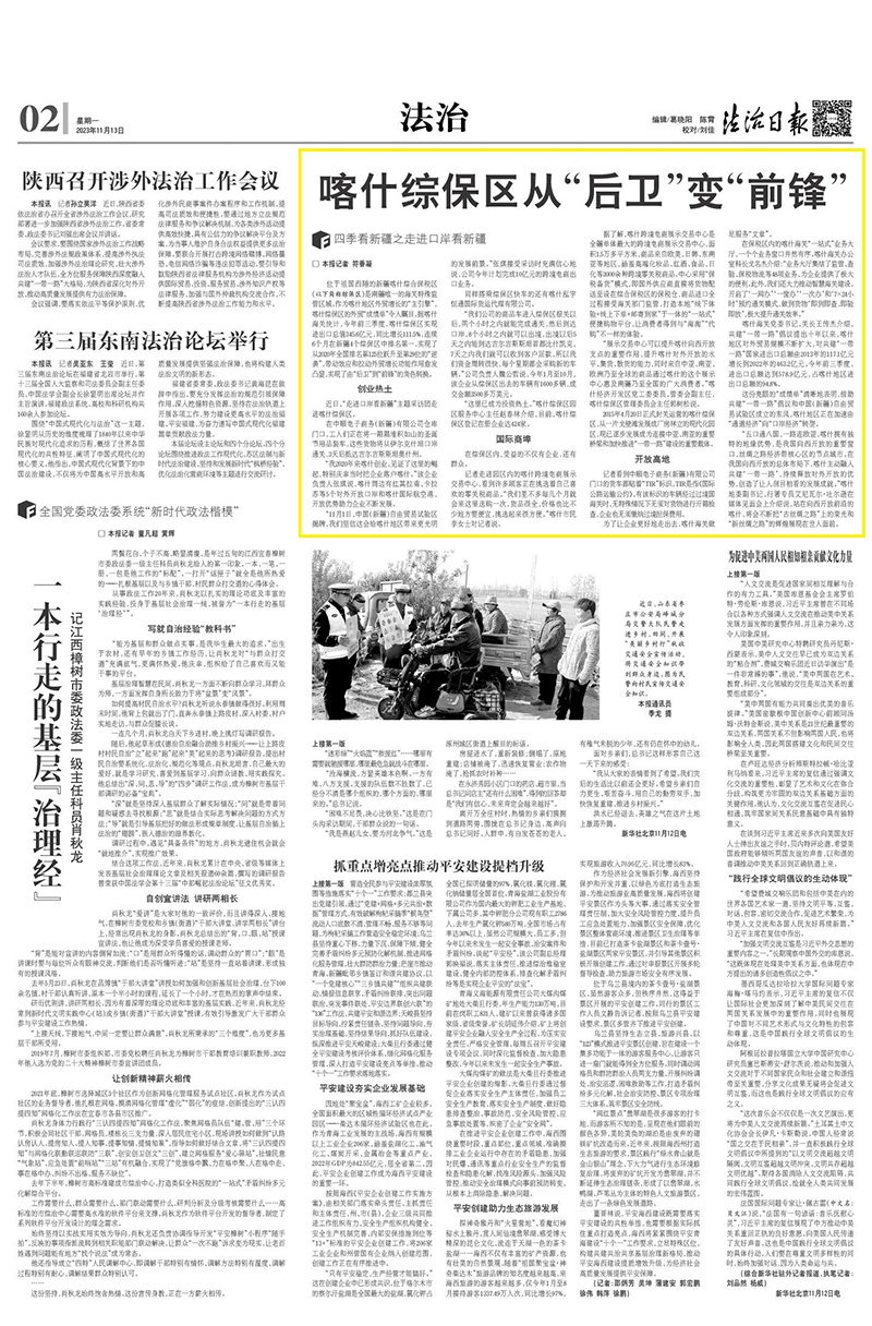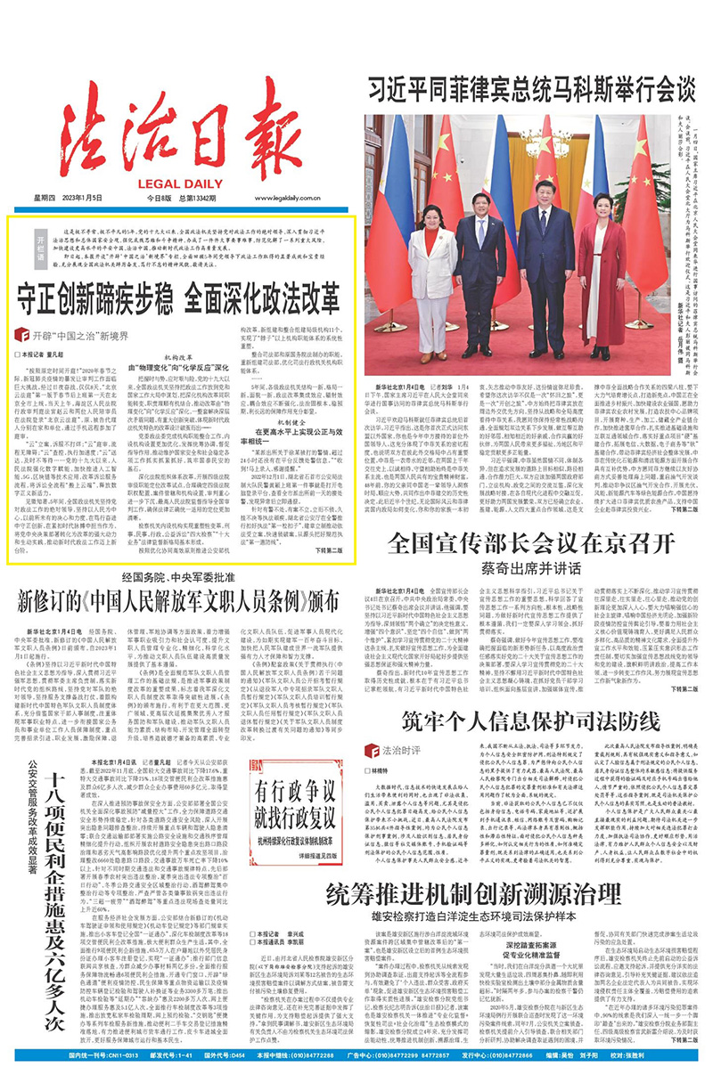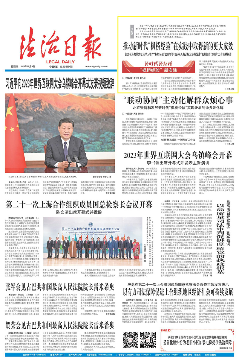 2023年11月9日,“新时代新征程·‘枫桥经验’新实践”专栏在《法治日报》1版开栏,共推出4篇专家解读、6篇省级政法委书记署名文章和50余篇“枫桥式工作法”先进单位事迹稿件