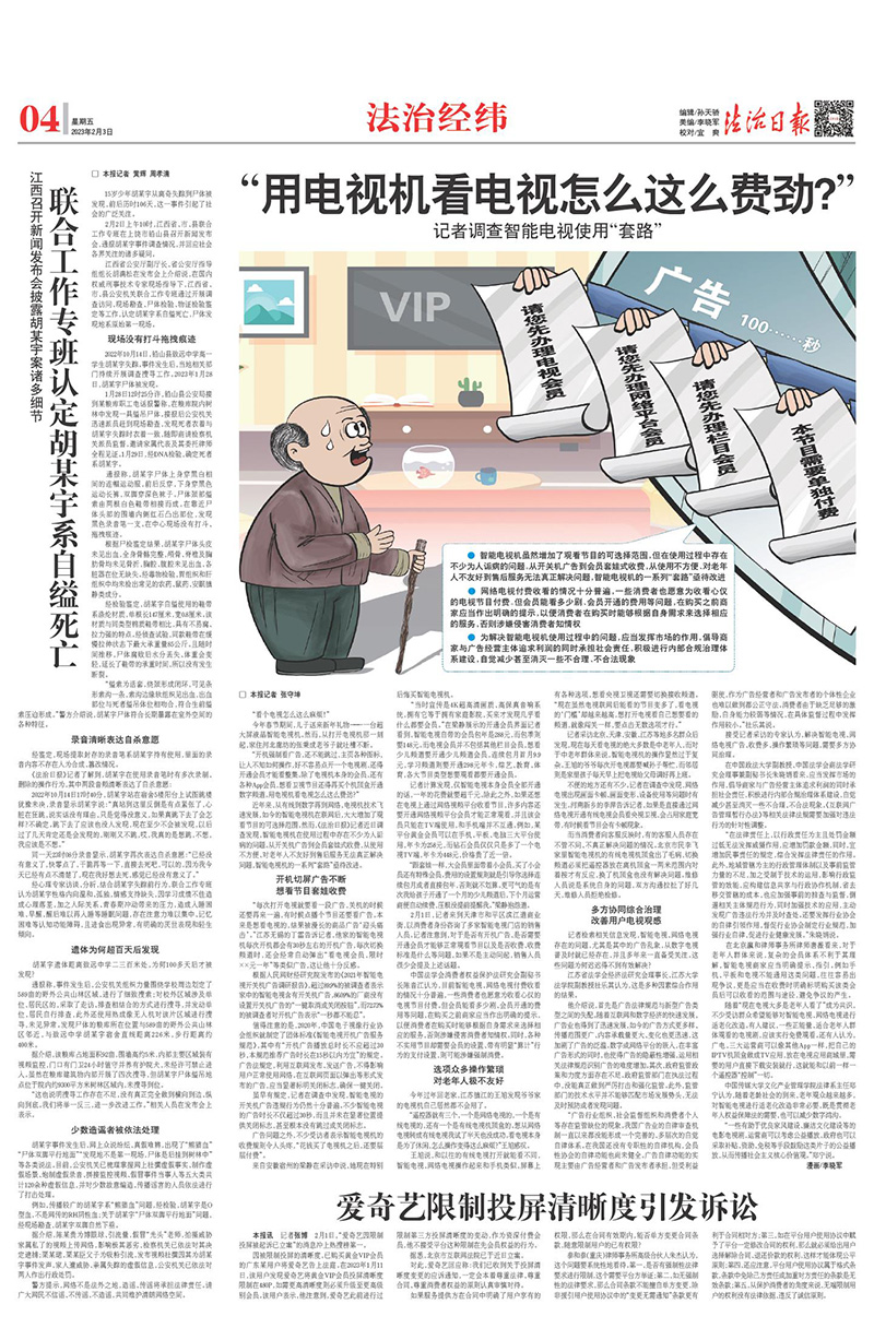 《“用电视机看电视怎么这么费劲?”记者调查智能电视使用“套路”》稿件一经发布,迅速冲上微博热搜榜,引发大量转载。2月7日,中国网络视听节目服务协会发布关于规范智能电视收费行为倡议书