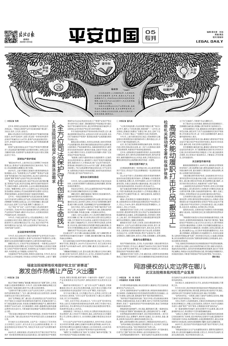 刊发《新疆“数字+检察”让监督更高效》《靠着这项技术,他们帮11名失踪儿童找到了家!》等稿件,展现科技助力法治建设成果;聚焦人工智能技术带来的法律风险,推出《人工智能在司法审判中应扮演什么角色?最高法发文明确!》《记者调查:ChatGPT风口下的灰色“生意经”》等稿件,助推法治之力护航科技发展。