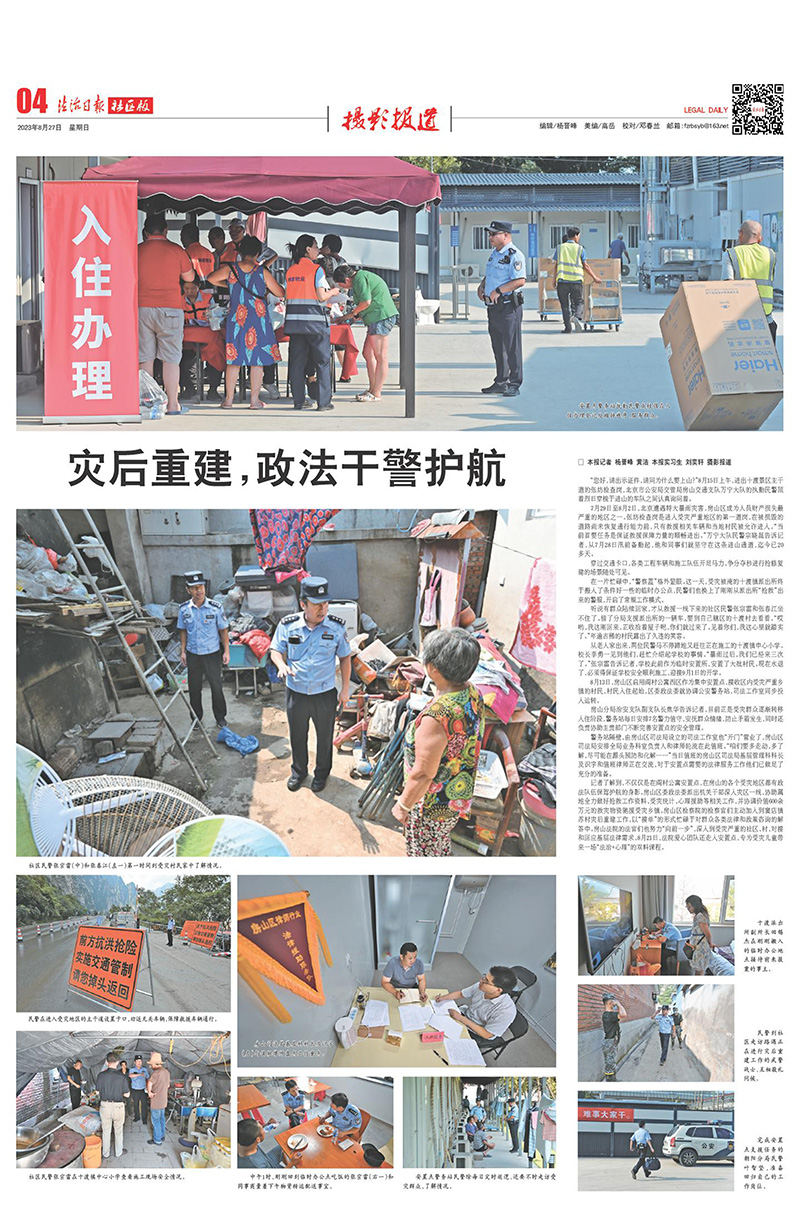 2023年8月27日《法治日报·社区版》4版《灾后重建,政法干警护航》摄影专版